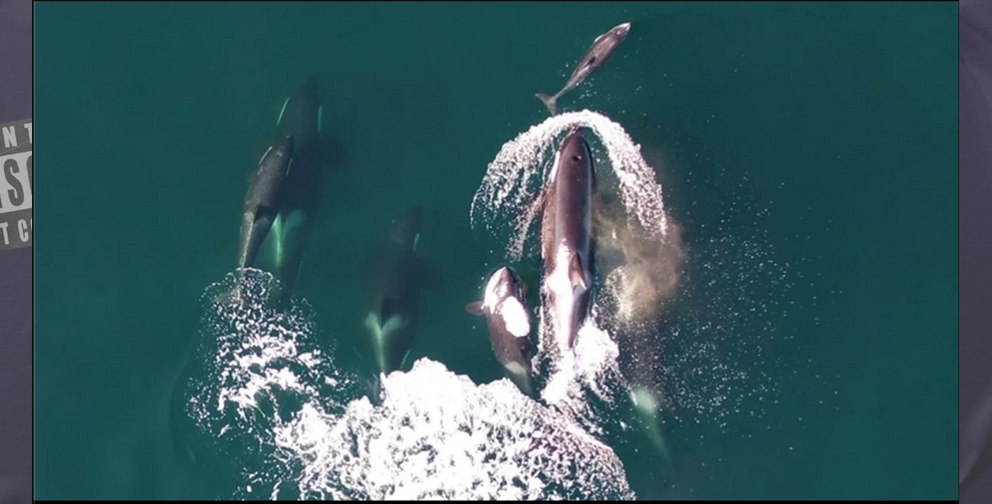 Τα βίντεο της έρευνας δείχνουν τα δελφίνια - τα οποία, σύμφωνα με το Fortune, λειτουργούν ως "ανιχνευτές" - να διασχίζουν απρόσκοπτα τα υαλώδη νερά του Ειρηνικού κυνηγώντας τον σολομό, ο οποίος μπορεί να φτάσει σχεδόν ένα μέτρο σε μήκος. Οι όρκες ακολουθούν από κοντά.