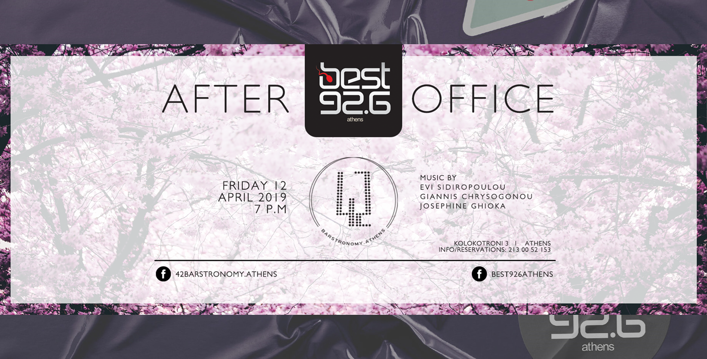 Το AFTER OFFICE Event του Best Radio 92.6 επιστρέφει την Παρασκευή 12 Απριλίου στις 7 το απόγευμα, στο 42Barstronomy.Athens