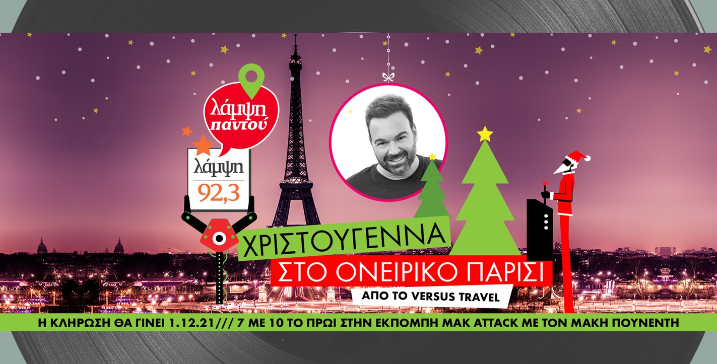 Ταξίδέψτε στο Παρίσι για 5 ημέρες τα Χριστούγεννα, από τον 92.3 Λάμψη και το Versus Travel, τον Νο.1 Ταξιδιωτικό Οργανισμό στην Ελλάδα!