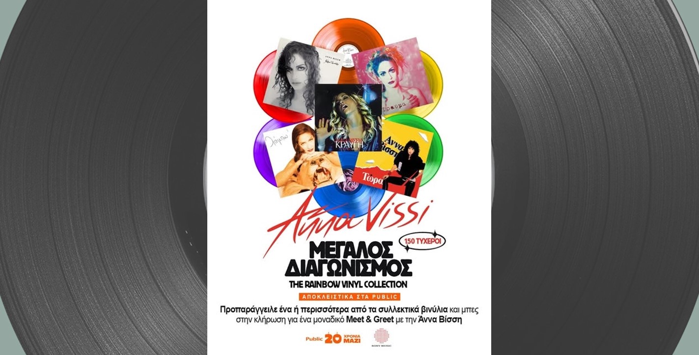 Η Sony Music Greece επανακυκλοφορεί τα 5 θρυλικά άλμπουμ της απόλυτης Ελληνίδας σταρ σε limited edition βινύλια στα χρώματα του ουράνιου τόξου και σου προσφέρει την ευκαιρία να συναντήσεις από κοντά την Άννα Βίσση για να στα υπογράψει, στο Public Συντάγματος. 🌈