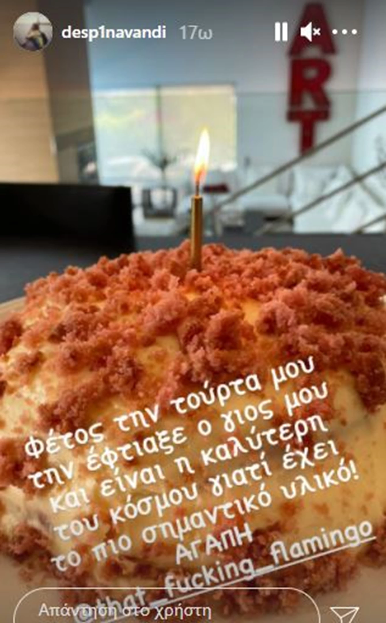 "Φέτος την τούρτα μου την έφτιαξε ο γιος μου και είναι η καλύτερη του κόσμου, γιατί έχει το πιο σηματικό υλικό: Αγάπη", έγραψε η Δέσποινα Βανδή στη φωτογραφία που ανέβασε στα insta stories της.