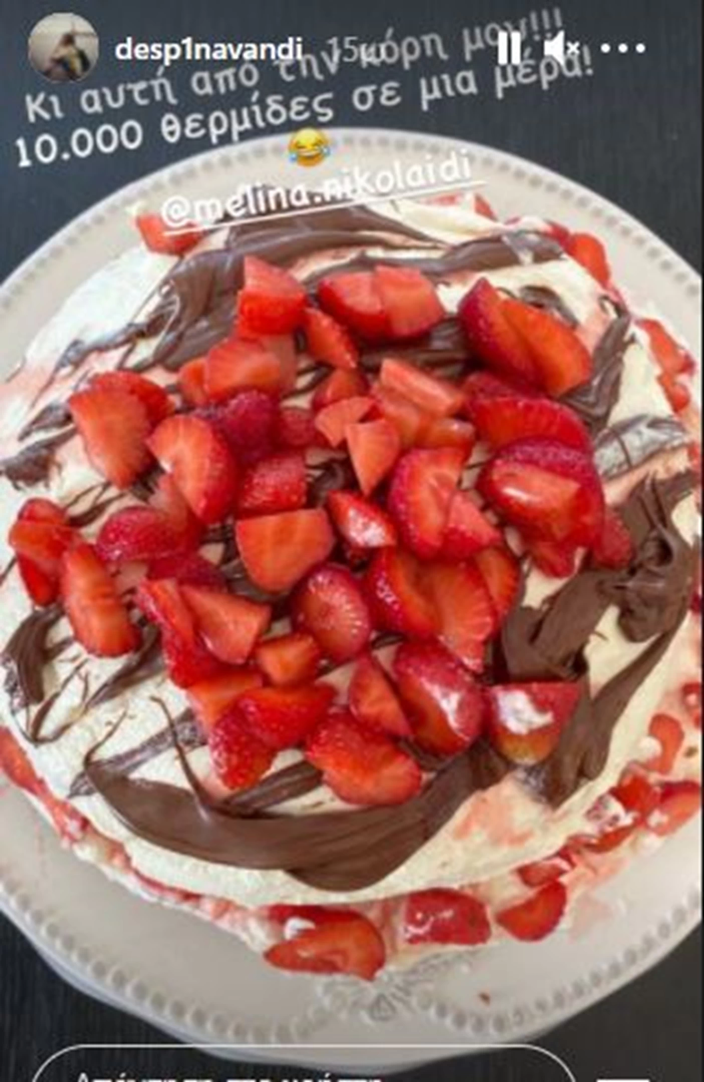 Όμως, τούρτα για τη μητέρα της είχε και η Μελίνα Νικολαϊδη, με την τραγουδίστρια να γράφει στη λεζάντα: "Κι αυτή από την κόρη μου. 10.000 θερμίδες σε μία ημέρα!".