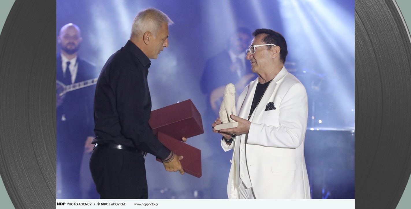 Η στιγμή που ο Δήμαρχος Πειραιά ανέβηκε για να βραβεύσει τον Λευτέρη Πανταζή ήταν ειλικρινής και το αυθεντικό συναίσθημα χαρακτήρισε όλη την βραδιά.
