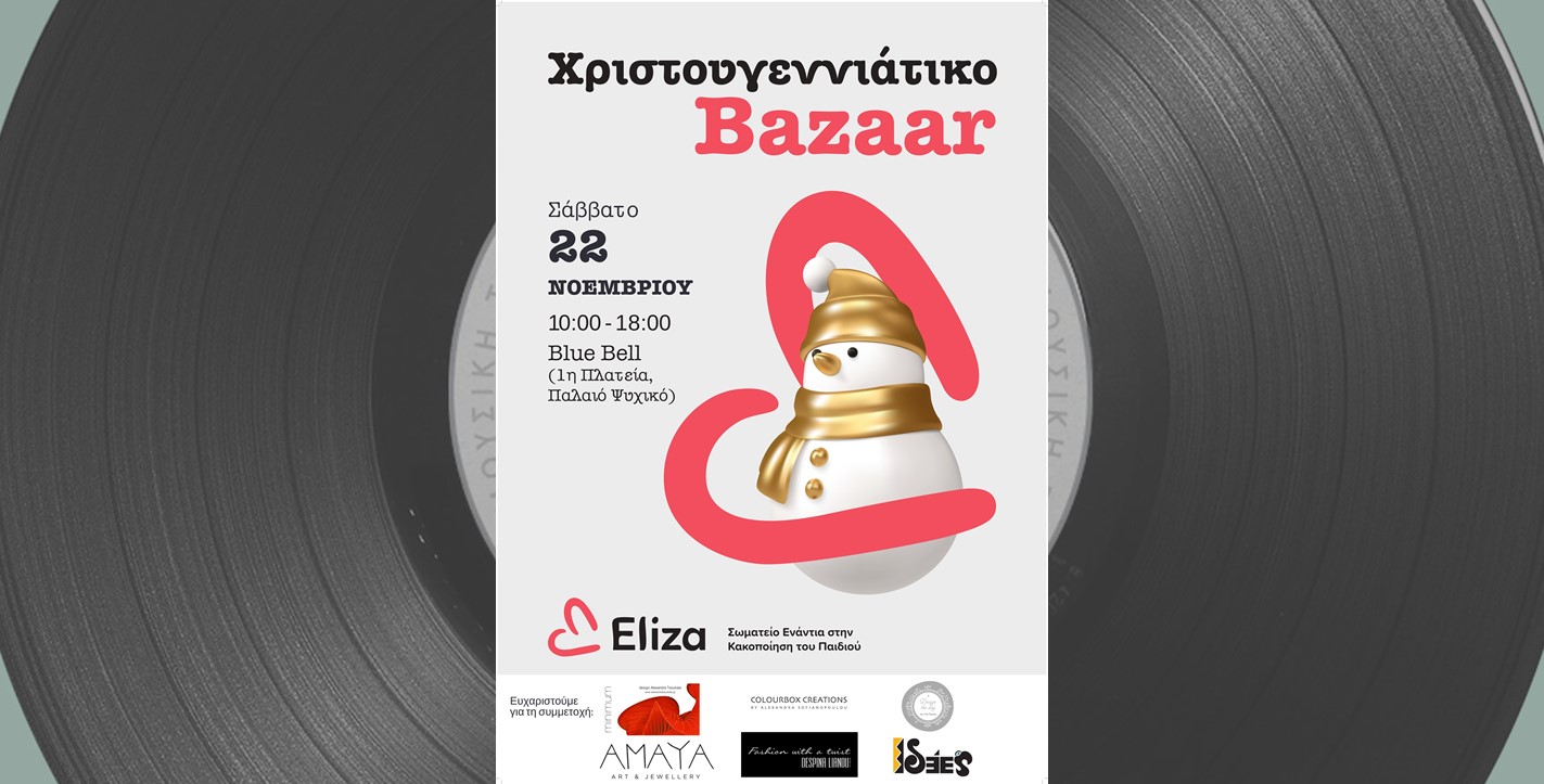 Το Σωματείο ΕΛΙΖΑ – Εταιρία κατά της Κακοποίησης του Παιδιού σας προσκαλεί στο καθιερωμένο και αγαπημένο πλέον Χριστουγεννιάτικο Bazaar του, το Σάββατο 22 Νοεμβρίου, από τις 10:00 έως τις 18:00, στο Blue Bell, στην Α’ Πλατεία Ψυχικού.
