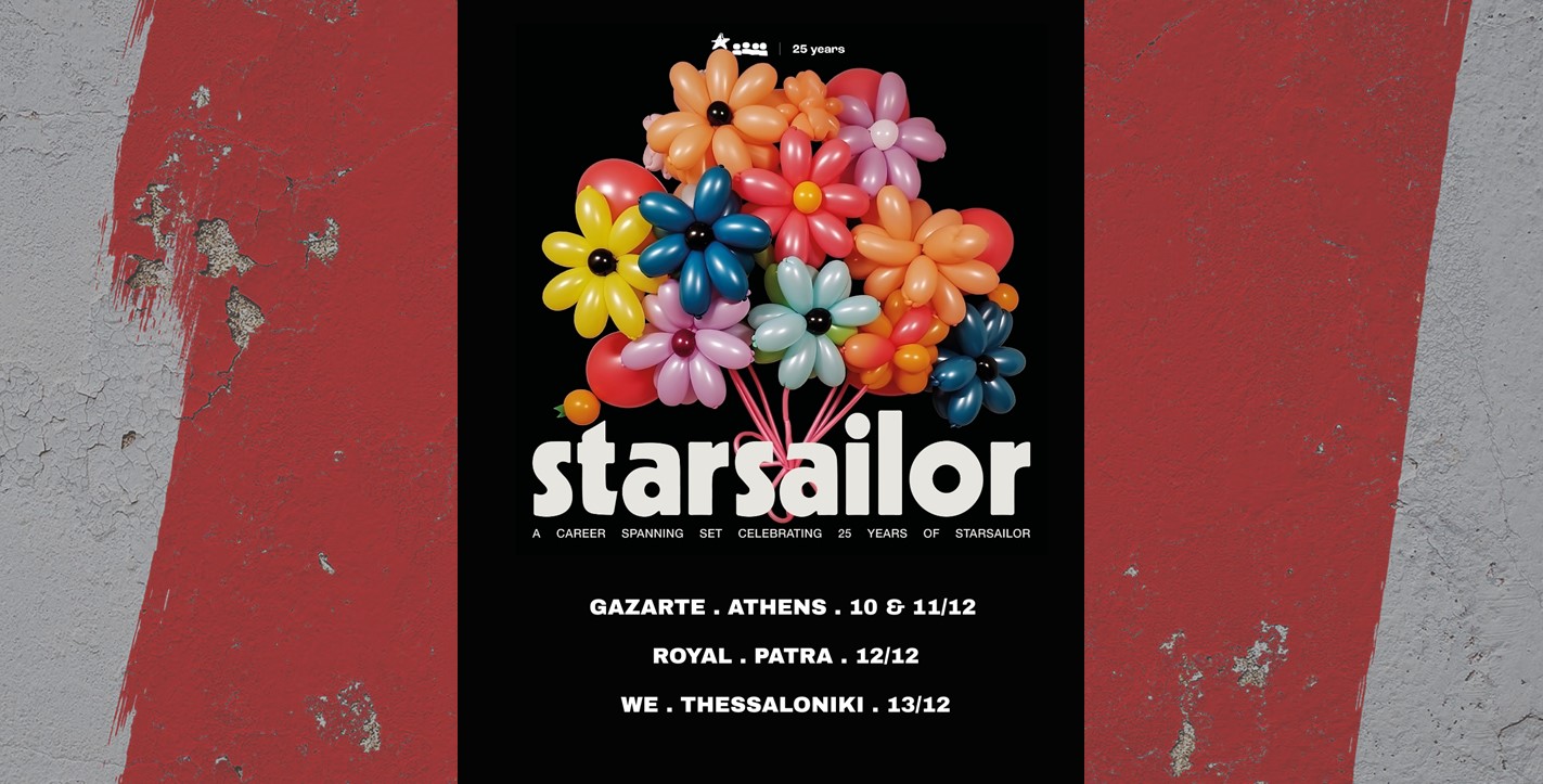 Οι αγαπημένοι του ελληνικού κοινού Starsailor επιστρέφουν στην Ελλάδα για να γιορτάσουν τα 25 χρόνια υπαρξής τους, την Τετάρτη 10 Δεκεμβρίου & Πέμπτη 11 Δεκεμβρίου 2025 στο Gazarte Ground Stage στην Αθήνα, την Παρασκευή 12 Δεκεμβρίου στο Royal στην Πάτρα και το Σάββατο 13 Δεκεμβρίου στο WE στη Θεσσαλονίκη, τέσσερις βραδιές γεμάτες συγκίνηση και βρετανική φινέτσα.