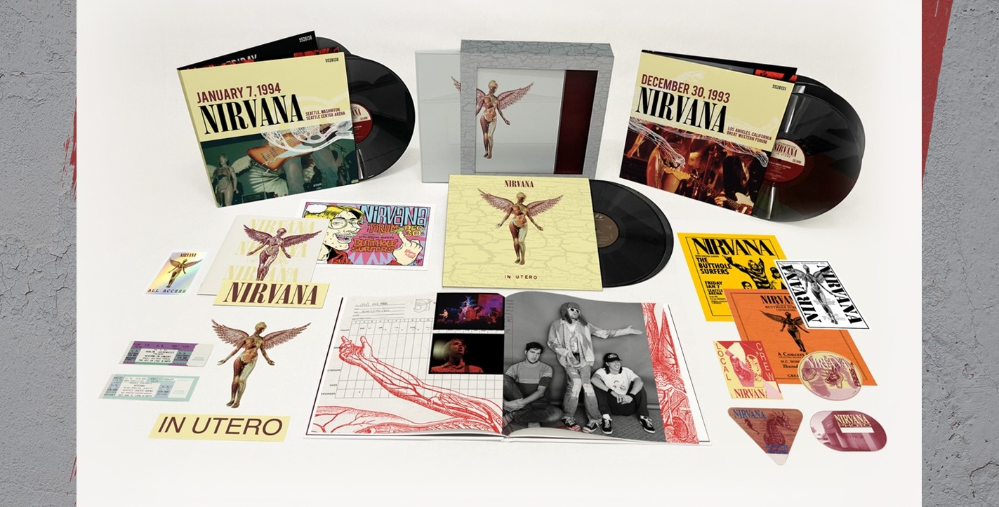 "In Utero" newly remastered + two officially unreleased complete live albums from Los Angeles 1993 and Seattle 1994 + bonus studio tracks & b-sides + bonus live tracks from 1993/1994 tour 72 total tracks – 53 unreleased.
